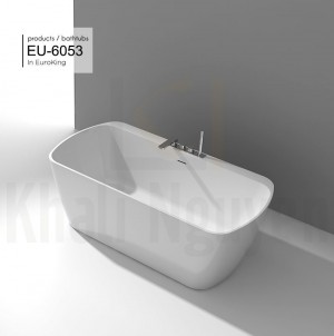 - Hình dáng oval quen thuộc, nhưng mặt ngoài bồn lại uyển chuyển khép nhỏ lại về phần đáy, tạo nên dạng hình thang. Khiến tổng thể cả chiếc bồn tuy nhìn dịu dàng những cũng không kém phần mạnh mẽ, cứng cáp. Kích thước là 1700*850*600 mm với chiều dài gấp đôi chiều rộng, EU – 6053 mang cho mình sự thon dài, gọn ghẽ.