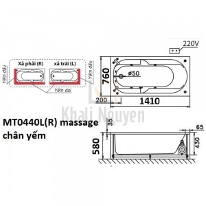 Thông tin cơ bản bồn tắm Caesar MT0440L/R massage chân yếm