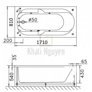 Bản vẽ kỹ thuật bồn tắm dài Caesar AT0270 1.7M
