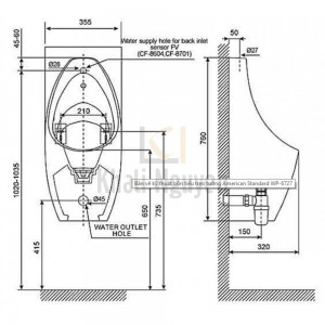 - Bồn tiểu nam American Standard treo tường Contour WP-6727 cải tiến tiết kiệm nước, chống bám bẩn