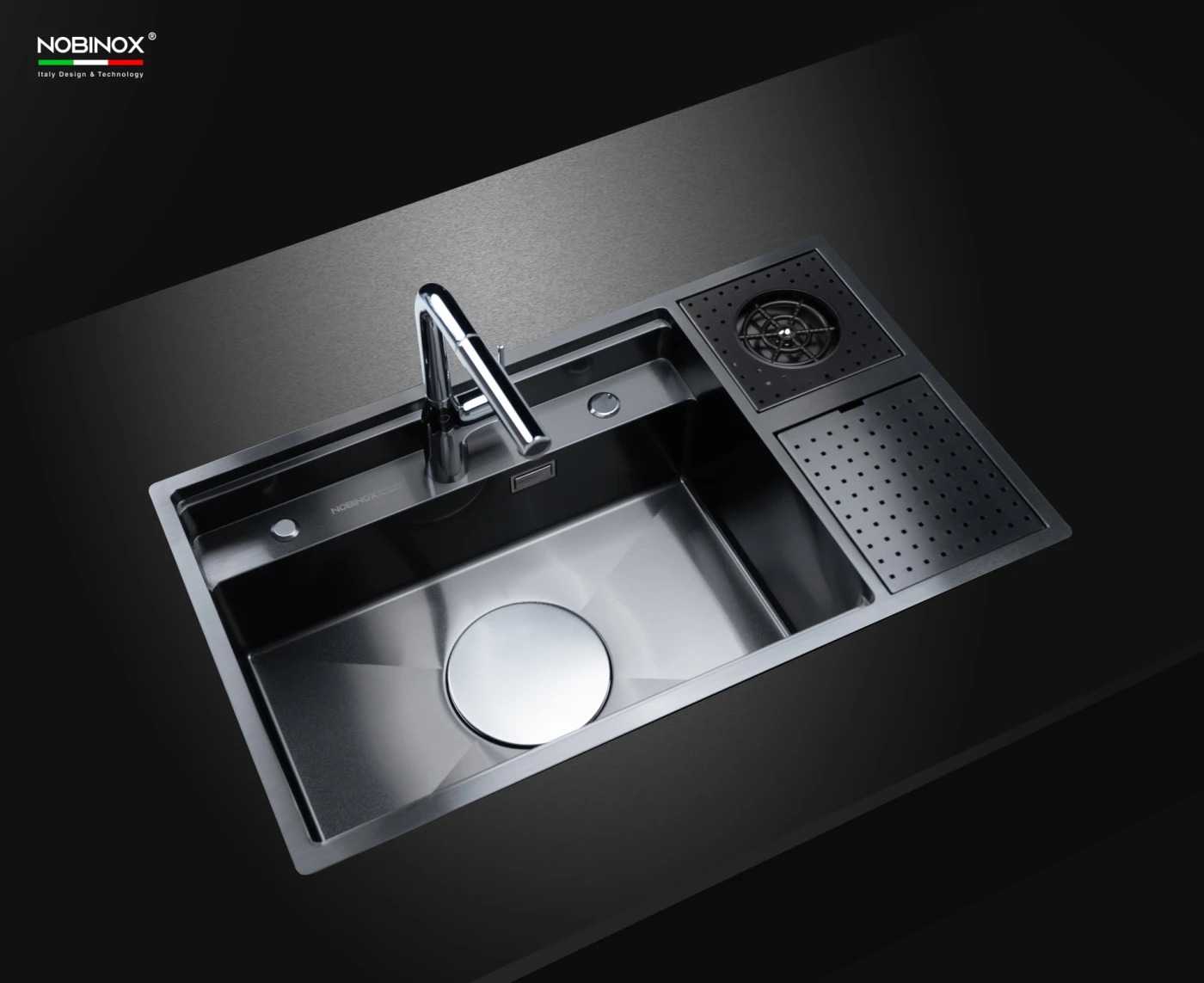 Chậu rửa bát LUMIA NJ510B Black thuộc bộ sưu tập chậu rửa bát cao cấp của Nobili – Nobinox, là minh chứng cho sự xuất sắc trong thiết kế Ý, kết hợp hài hòa giữa truyền thống và đổi mới để mang đến phong cách hoàn hảo cho phòng bếp.