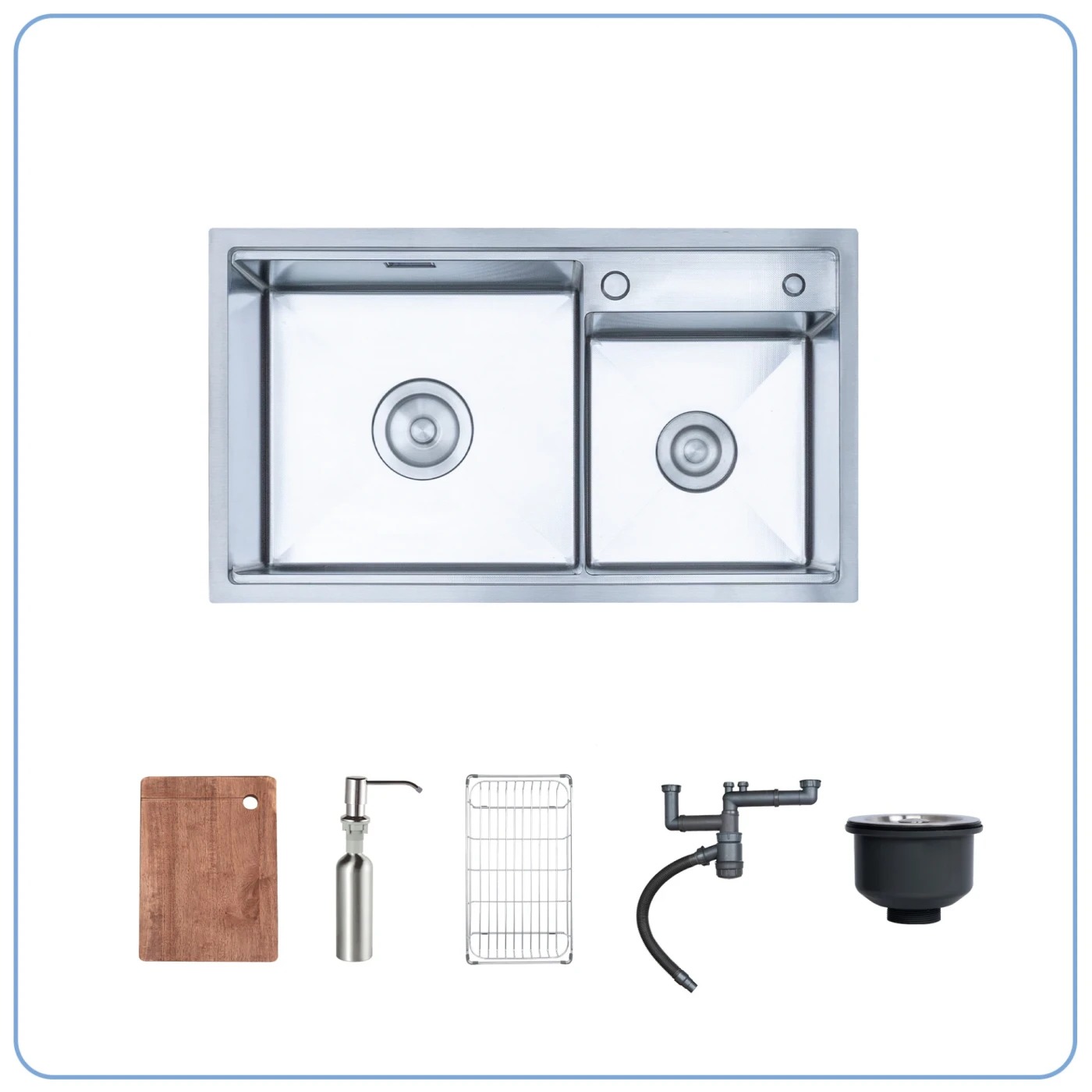 Thiết kế 2 hố lệch với đường nét mềm mại, thanh lịch, phù hợp mọi không gian bếp.