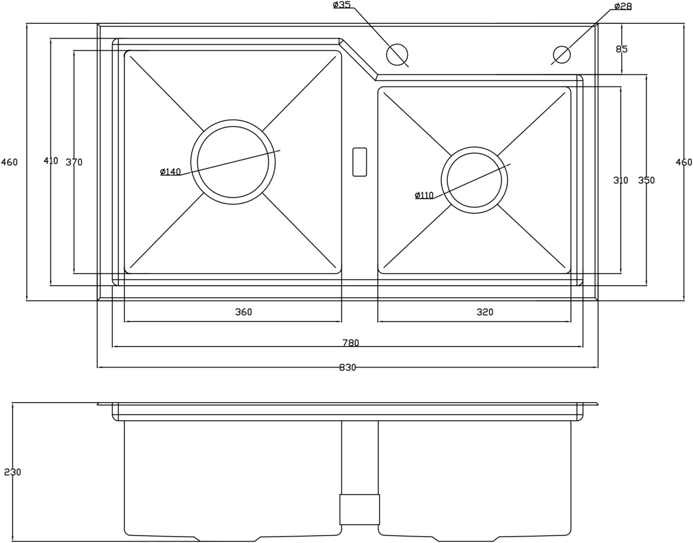 • Thiết kế 2 hố lệch giúp xử lý đồng thời nhiều công việc trong quá trình sơ chế – rửa – tráng.
