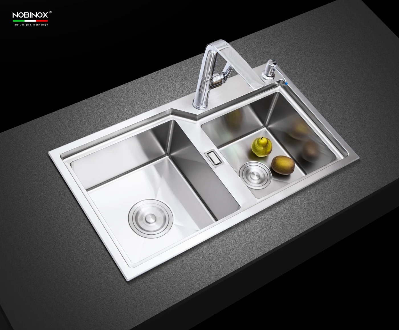 Chậu Rửa Bát 2 Hố Nobinox LUMIA NJ512 830*460*230mm
