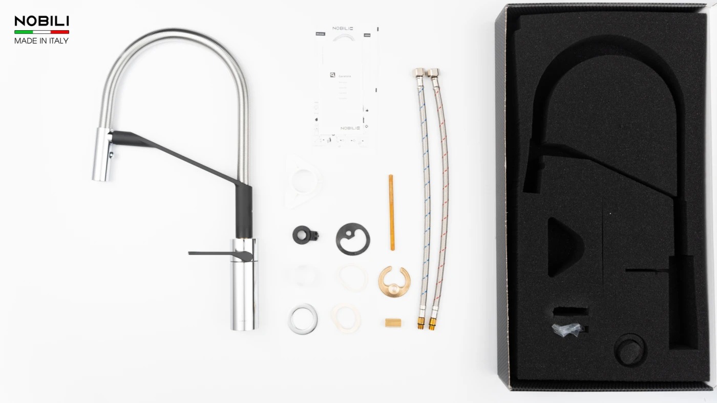 Vòi rửa bát Nobili HERON NB228 là mẫu vòi cần mềm nóng‑lạnh, nhập khẩu nguyên chiếc từ Italy, mang phong cách hiện đại nhưng vẫn rất tinh tế. Với phần đầu vòi cong bằng lò xo, thiết kế cần linh hoạt và tay gạt 2 chế độ nước, HERON NB228 thích hợp cho các không gian bếp cao cấp, nơi mà cả thẩm mỹ và công năng đều được đặt lên hàng đầu.