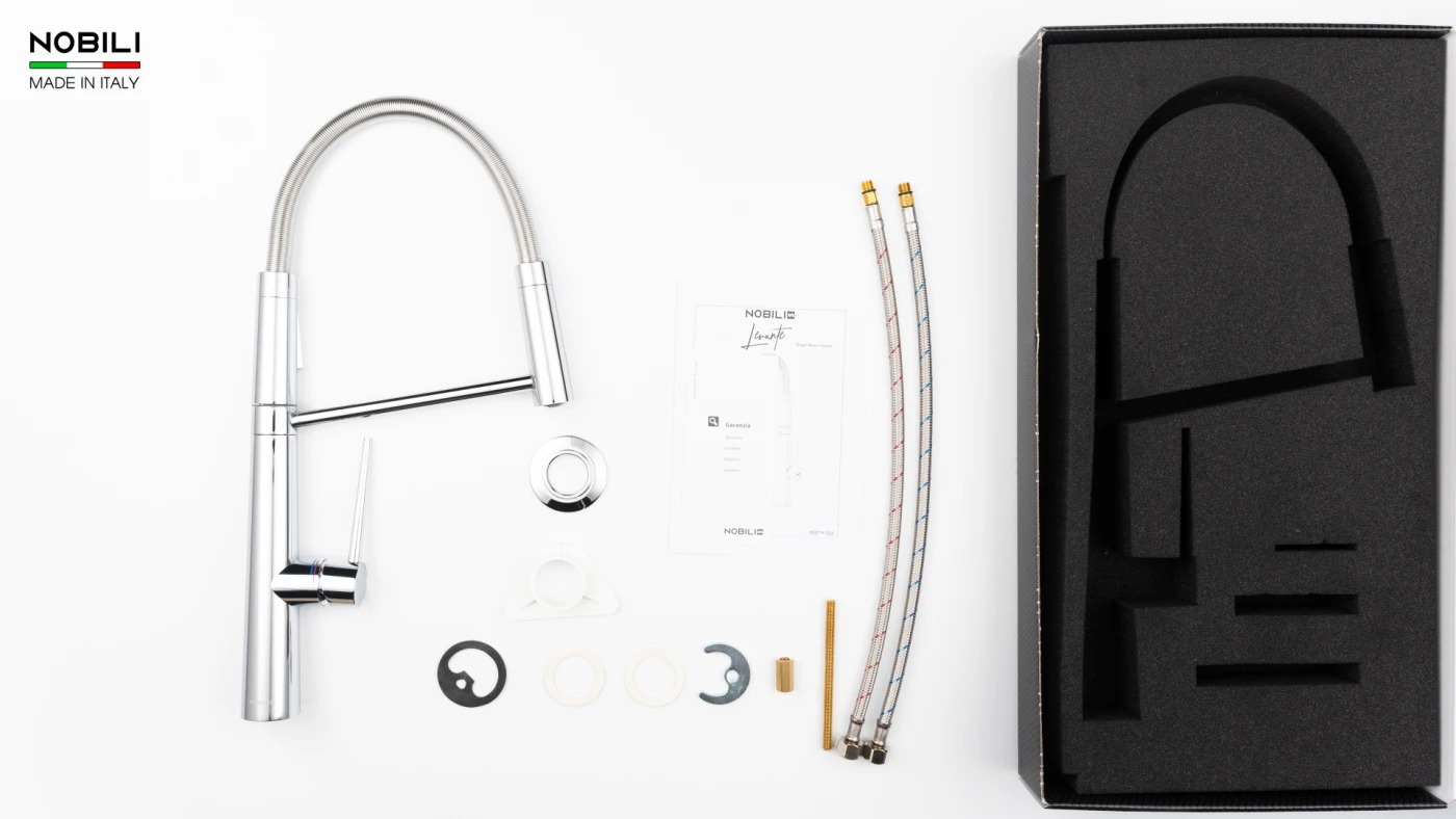 Vòi rửa bát Nobili Levante NB303 là mẫu vòi cần mềm nóng‑lạnh cao cấp, nhập khẩu nguyên chiếc từ Ý. Lấy cảm hứng từ vùng Liguria và tinh thần biển Địa Trung Hải, thiết kế Levante NB303 vừa thanh lịch vừa mạnh mẽ, đem lại vẻ sang trọng đẳng cấp cho không gian bếp.