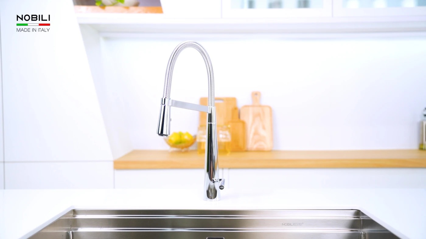 Vòi rửa bát Nobili LIKID NB880 là mẫu vòi cần mềm nóng‑lạnh cao cấp, nhập khẩu 100% từ Italy. Với đường cong mềm mại, thiết kế hình nón độc đáo và ống lò xo linh hoạt, LIKID NB880 mang đến sự thanh thoát, đẳng cấp và cảm giác “tác phẩm nghệ thuật” trong không gian bếp hiện đại.