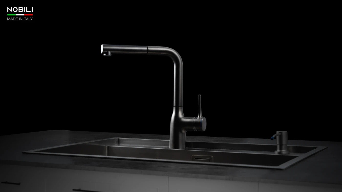 Vòi rửa bát MANIA NB216LTB là mẫu dây rút nóng – lạnh nhập khẩu nguyên chiếc từ Italy, mang phong cách hiện đại và bí ẩn với lớp hoàn thiện Moon Drop / đen nhám PVD. Thiết kế dây rút linh hoạt và khả năng xoay 180° giúp thao tác dễ dàng trong mọi vị trí bồn rửa, đồng thời tạo điểm nhấn sang trọng cho không gian bếp.