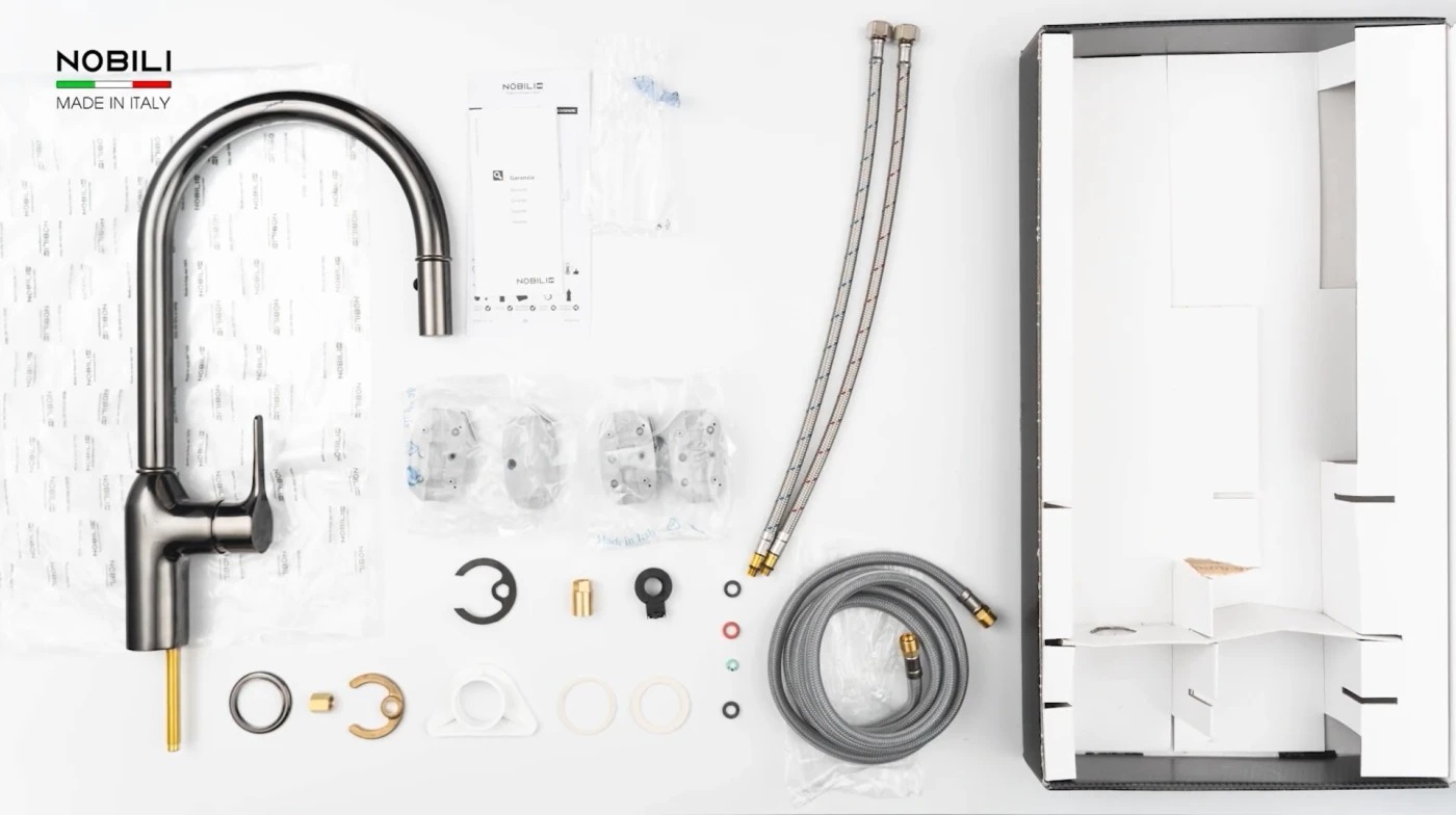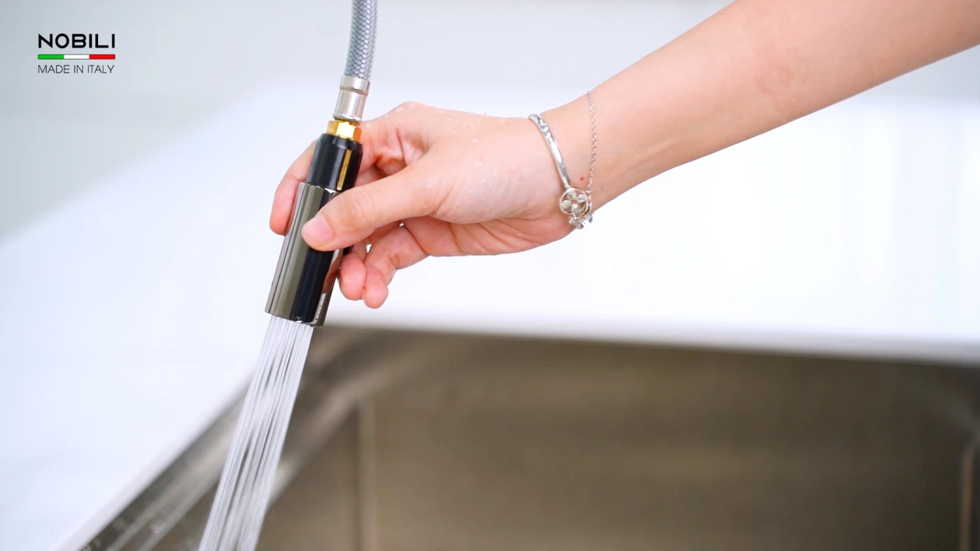 Vòi rửa bát Nobili RING NB130LTB là mẫu dây rút nóng‑lạnh cao cấp nhập khẩu nguyên chiếc từ Italy, sở hữu lớp mạ Diamond Smoke PVD sang trọng và thiết kế thanh lịch. Với chiều cao lý tưởng, đầu vòi nhiều chế độ và chức năng xoay linh hoạt, NB130LTB vừa mang vẻ đẹp hiện đại, vừa rất tiện dụng cho không gian bếp cao cấp.