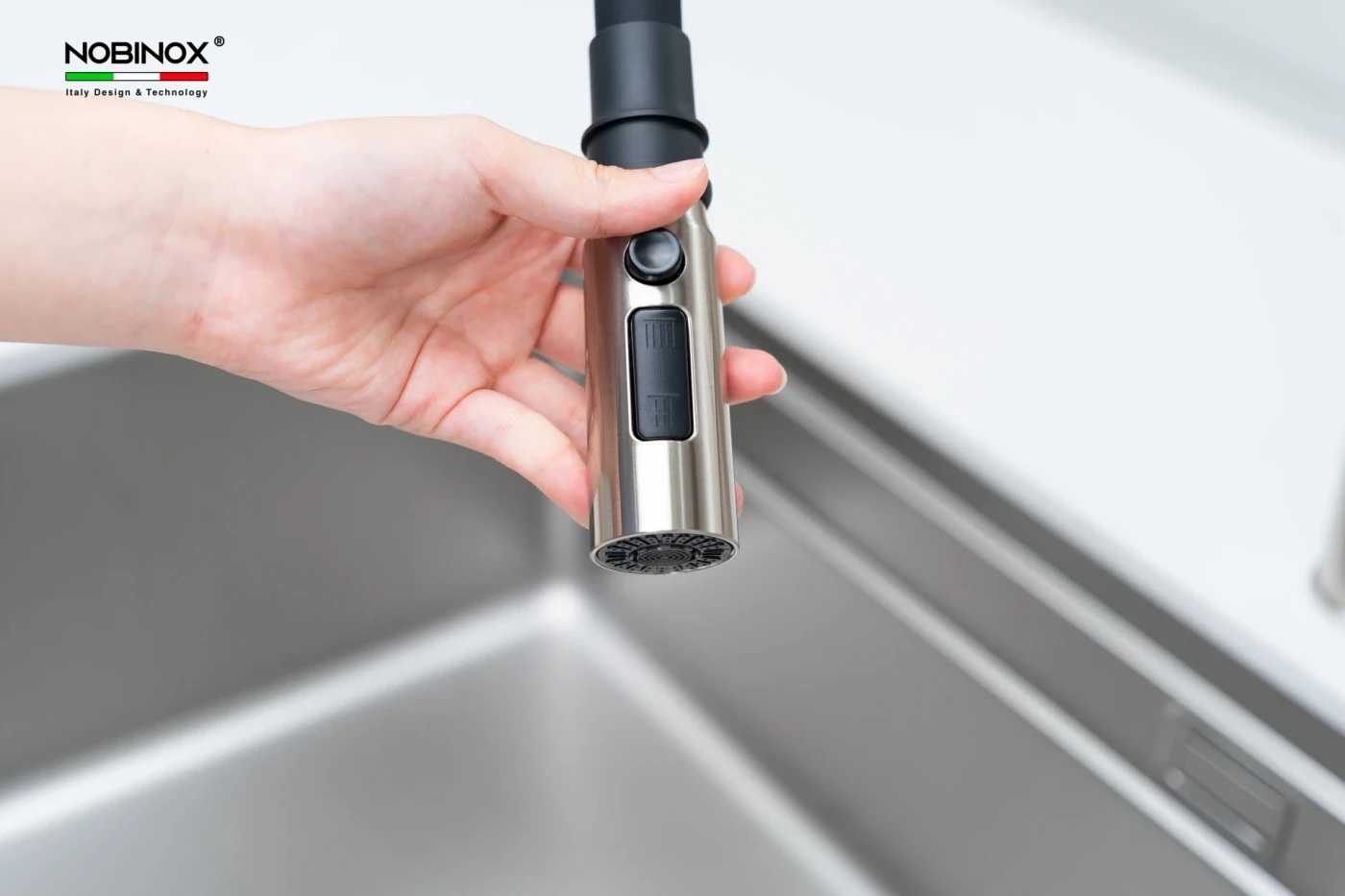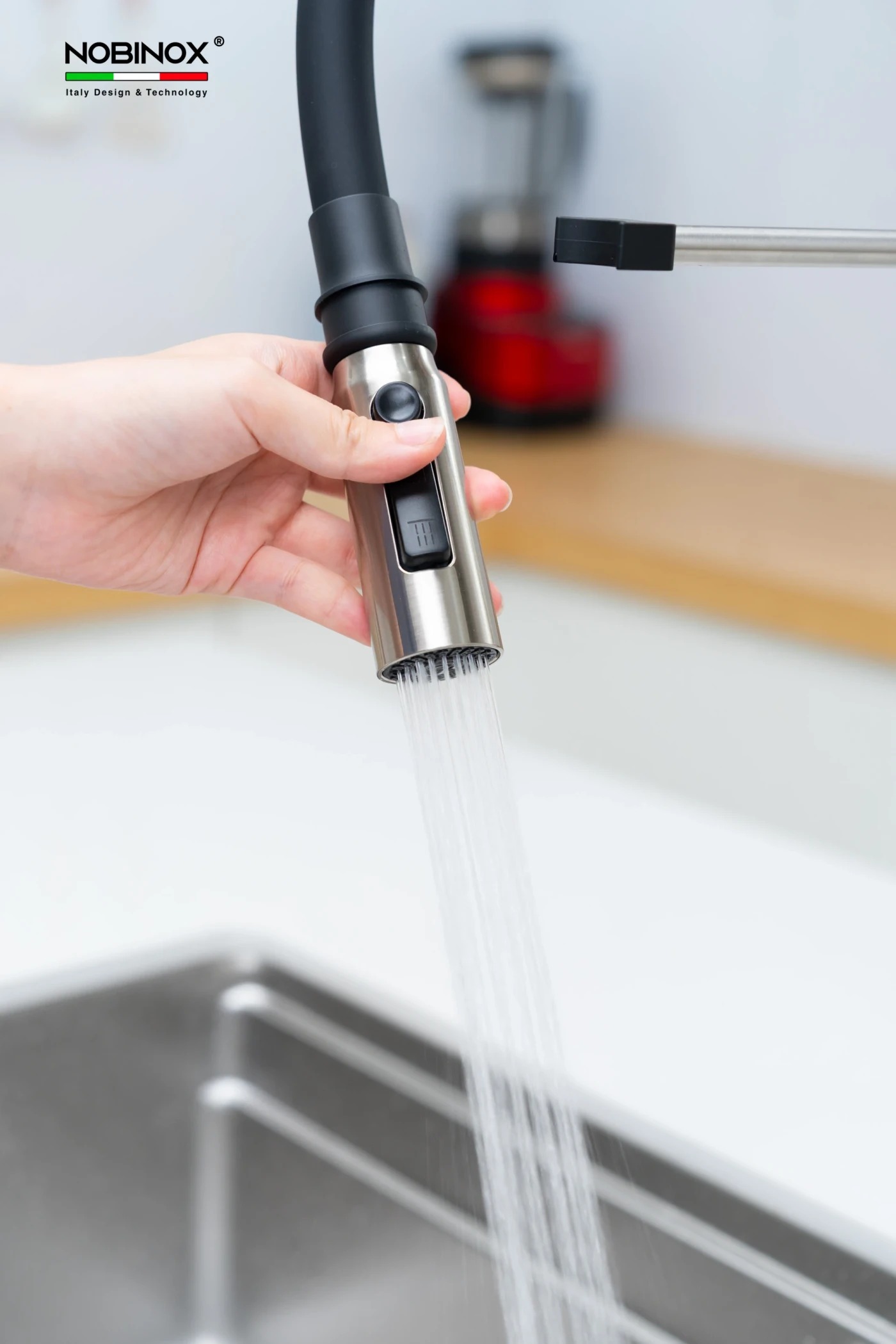 Vòi Rửa Bát Nobinox ALTO NX550 Cần Mềm + Nóng Lạnh + 3 Chế Độ