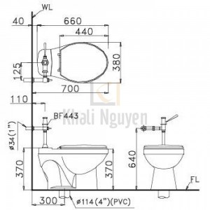 bản vẽ bồn cầu xả gạt tay Caesar CP1333/BF443