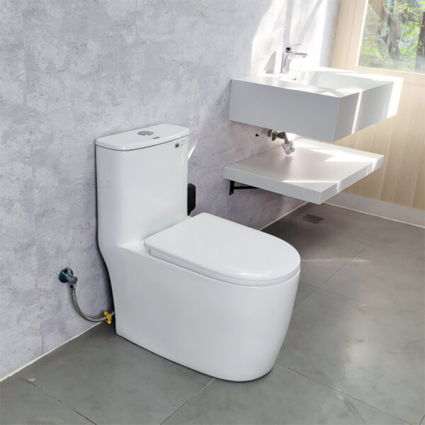 Bồn cầu liền khối ECOD EB555 là lựa chọn lý tưởng cho các không gian phòng tắm hiện đại, đề cao sự sạch sẽ, bền bỉ và tiện nghi. Sản phẩm được ứng dụng công nghệ men S-Ceramic cao cấp, kết hợp hệ thống xả Waterfall S-P mạnh mẽ và thiết kế vành mỏng Rimless không góc khuất, mang đến trải nghiệm vệ sinh tối ưu.