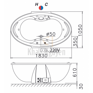 Bản vẽ bồn tắm chân yếm massage MT3280
