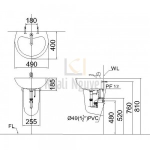 - Chậu Lavabo CAESAR L2150 kèm chân ngắn treo tường P2441 của hãng thiết bị vệ sinh Caesar