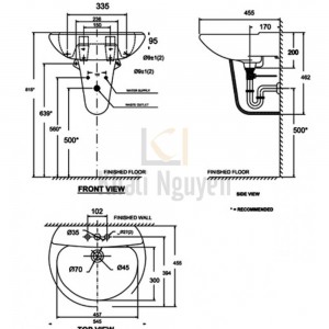 - Trong đó: VF-0800: chậu lavabo treo tường, VF-0911 : chân treo lavabo