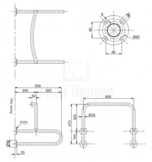 Bản vẽ kỹ thuật thanh vịn nhà tắm TOTO T113BU22/T110D3R(x4)