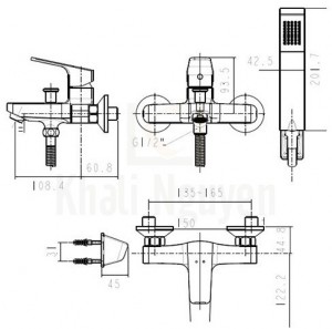 Bản vẽ kỹ thuật vòi Sen Nóng Lạnh American Standard WF-0411 Concept Square