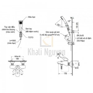 Bản vẽ kỹ thuật vòi hoa sen TOTO DM343 DB200CAFV1