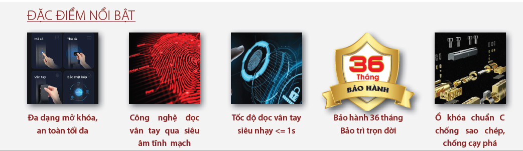 + Vận hành bằng mật mã, vân tay, chìa thẻ từ, chìa khóa cơ, APP Tuya, Video call, Face ID 3D